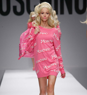 時裝周新款 莫斯奇諾粉紅芭比中長款字母套頭毛衣 同款 /