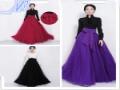 XB 新款夏季時尚百搭高腰網紗半身裙大擺長裙女半身長裙三層不透 /