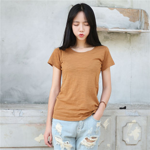 2015夏季新款韓版純色短袖t恤女簡(jiǎn)約修身顯瘦圓領(lǐng)學(xué)生打底衫上衣 /