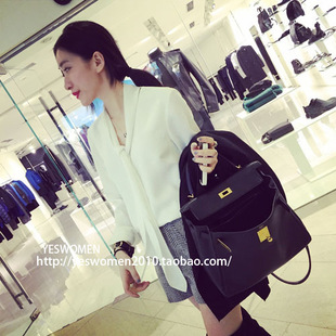 【YESWOMEN】小宜定制秋冬裝女裝新款 純色厚雪紡綁帶套頭襯衫 /