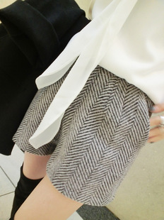 【YESWOMEN】小宜定制秋冬裝女裝新款 百搭必備幾何紋呢料短褲 /