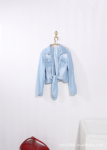 廠家直銷2015女式外貿(mào)日本VIVI雜志款長袖短款牛仔襯衫前打結(jié)外套 /