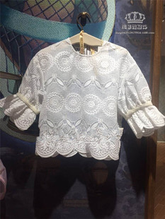Forever2015夏新歐美寬松蕾絲提花中袖蕾絲衫鉤花小上衣352D507 /