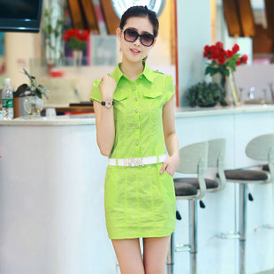2015新款純色短袖翻領連衣裙修身潮流套裝女一件代發(fā) /