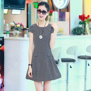 2015夏季新款波點真絲連衣裙女圓領修身高端大氣批 /