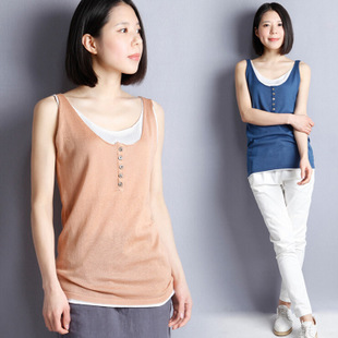 棉麻背心女式復(fù)古風(fēng)格小背心假兩件針織雪紡吊帶衫內(nèi)搭寬松女背心 /