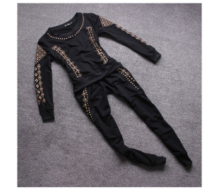 速賣通ebay熱賣 歐美風(fēng)鉚釘骷髏鬼頭重工休閑運(yùn)動套裝 釘珠 女 /