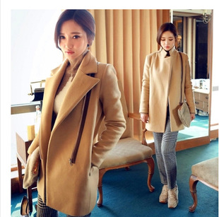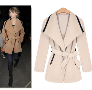 秋冬新款 歐美明星同款 修身毛呢女外套大翻領呢子大衣 /