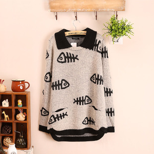 2014秋冬新款森女風日系毛衣女魚骨頭毛衣圖案女裝針織衫批發(fā) /