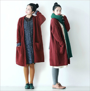 2014秋冬款森女敘舊百搭厚款開衫 長款針織衫毛衣女 文藝百搭毛衣 /