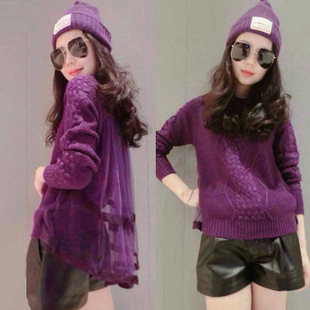 歐洲站2014秋季女裝大牌純色后背后一層蕾絲網(wǎng)紗套頭毛衣針織衫 /