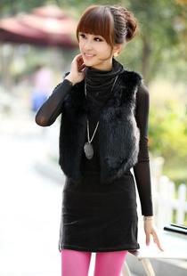 2015春秋季女士仿兔毛馬甲狐貍毛馬夾背心坎肩女海寧皮革 /