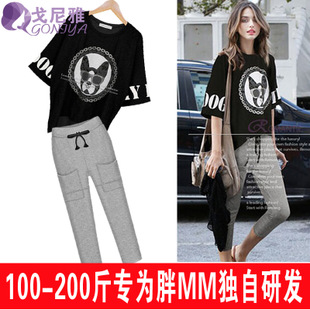 大碼女裝2015夏季新款胖mm歐美女套裝顯瘦印花t恤加小腳褲兩件套 /