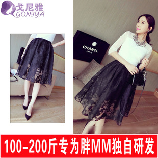 大碼女裝半身裙2015夏裝新款胖mm中長款高腰半身裙200斤顯瘦 包郵 /