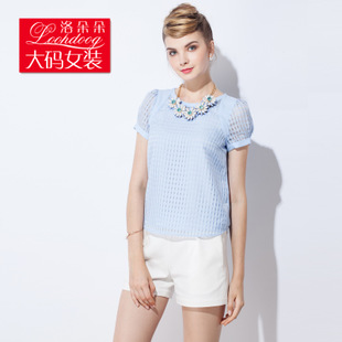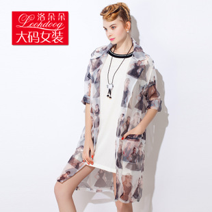 洛朵朵2015夏裝新款大碼女裝胖MM歐美印花寬松襯衫外套0575 /