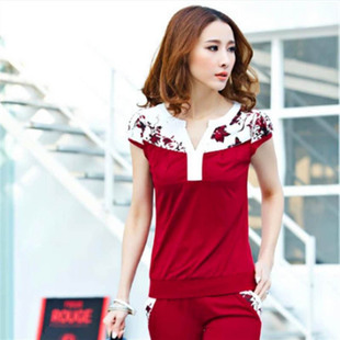 2015夏季新款短袖休閑套裝潮時(shí)尚印花衛(wèi)衣七分褲運(yùn)動(dòng)服套裝 /