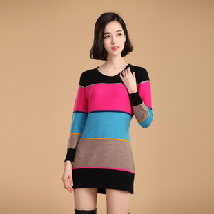 2014秋裝新款韓版潮女裝長袖打底衫 圓領長袖拼接色針織衫可代發(fā) /