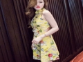 2015新款夏季復(fù)古中國(guó)風(fēng)仿真絲印花修身包臀流蘇旗袍式連衣裙女 /