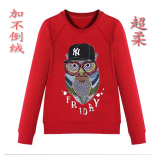 歐美潮牌 女裝秋冬外套大碼貓頭鷹加厚保暖 加絨衛(wèi)衣女 /一件代發(fā) /