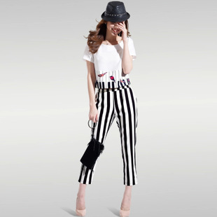 2015夏裝新款女短袖套裝 韓版女裝時(shí)尚休閑條紋修身兩件套8560 /