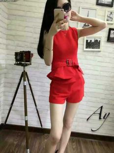 歐洲站最新時(shí)尚休閑簡(jiǎn)約氣質(zhì)修身無(wú)袖上衣+短褲套裝 送腰帶 /