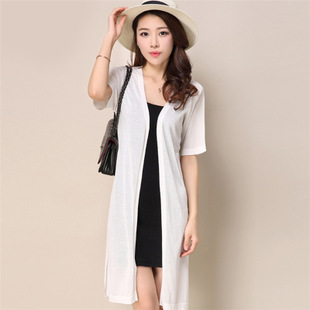 時尚休閑夏季新款精品女士針織衫開衫 簡約V領(lǐng)中袖中長款女裝 /
