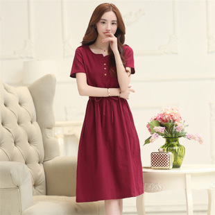 廠家批發(fā) 休閑時尚不規(guī)則女裝 2015新款夏季短袖純色圓領(lǐng)連衣裙 /