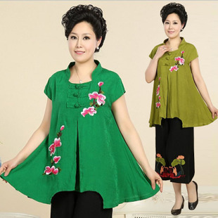 2015夏季中老年女裝褲子民族風(fēng)大碼媽媽裝繡花套裝奶奶服批發(fā) /