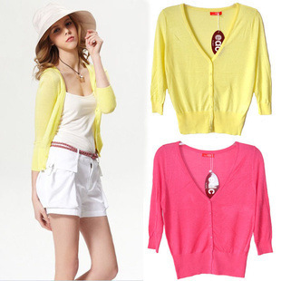 簡介: 建議零售價(jià) ¥99.00 貨號 7108 產(chǎn)地 東莞大朗 品牌 潮藝 主圖來源 實(shí)拍有模特 貨源類別 現(xiàn)貨 庫存類型 整單 是否庫存 是 風(fēng)格 韓版 圖案 純色 毛種類 混紡類 毛衫工藝 針織 厚薄 超薄 款式 開衫 組合形式 單件套 版型 修身型 衣長 普通款(50cm<衣長≤65cm) 衣門襟 單排扣 領(lǐng)型 V字領(lǐng) 袖長 七分 袖型 常規(guī)袖 流行元素 透視 上市年份/季節(jié) 2015春季 顏色 白色,黑色,水粉,湖藍(lán),果綠,杏色,深灰,草綠,寶石藍(lán),淺紫,亮黃,米黃,水藍(lán),大紅,玫紅,淺灰,橙色,西瓜紅,姜黃,粉綠 尺碼 均碼七分袖,均碼長袖,大碼七分袖,大碼長袖