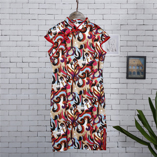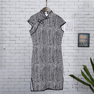 夏季新款印花旗袍連衣裙修身短款重磅旗袍高檔復古改良18 /