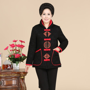 時尚立領(lǐng)媽媽裝唐裝棉衣批發(fā) 2014新品中老年女式拼接棉衣加厚 /