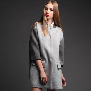 2014秋冬新款原創(chuàng)設(shè)計(jì)女大衣 拼接色立領(lǐng)上衣 雙色空氣w4 /