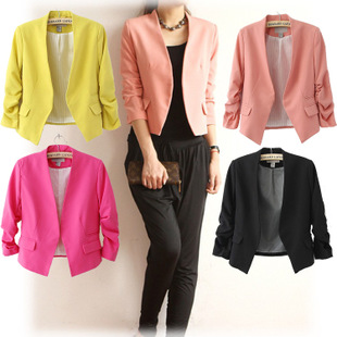 新款 專柜同步歐美風(fēng)無扣修身短款小西服西裝 /