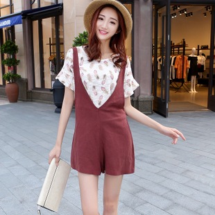 夏款文藝女裝寬松舒適棉麻背帶短褲女 閨蜜裝韓國連體褲高腰薄款 /