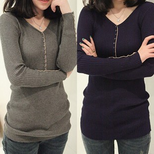 2013潮秋冬新款韓版性感套頭V領(lǐng)針織衫修身螺紋百搭打底衫長袖 /