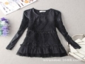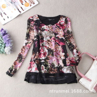 H-19新款 精美大花拼接長袖休閑百搭雪紡衫 秋裝新款女裝 /