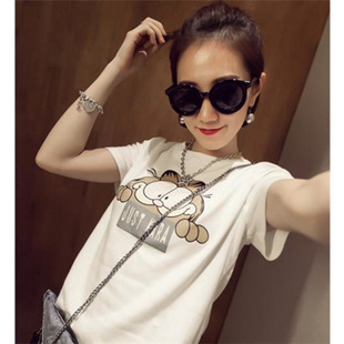 純棉短袖少女t恤夏裝新款2015閨蜜姐妹裝韓版大碼寬松卡通咖啡貓 /