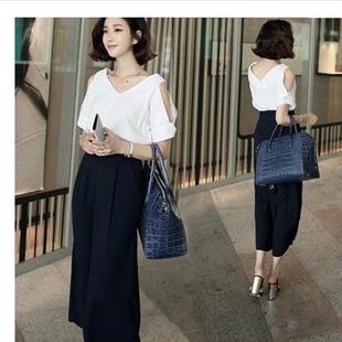 廠家直銷2015夏裝新款韓版女裝 棉麻襯衫+闊腿褲套裝 女 /