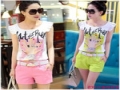 • 新款韓版飛飛袖時(shí)尚印花休閑套裝短袖短褲兩件套套裝夏女潮 /