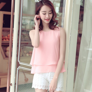 自產(chǎn)自銷量大套裝現(xiàn)貨褲套裝無袖粉色甜美短褲鏤花背心套裝女 /