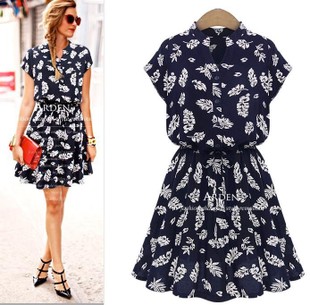 • 2015春夏女裝新款歐美修身顯瘦碎花短袖連衣裙短裙小清新連衣裙子 /