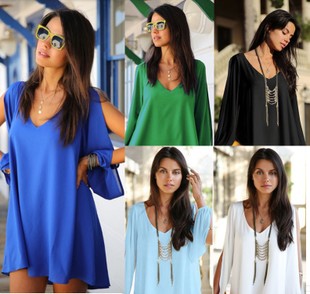• 2015速賣通ebay貨源秋季新款迷你v領(lǐng)雪紡寬松A字連衣裙時尚女裝 /