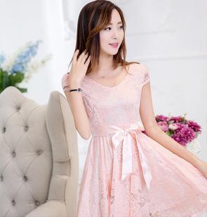2015夏季裝新款連衣裙 韓版修身蕾絲短袖連衣裙淑女連衣裙女 /