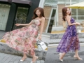 2015夏季新款波西米亞長裙碎花度假沙灘裙雪紡長款連衣裙廠家直銷 /