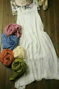 棉麻連衣裙夏天薄款吊帶寬松腰文藝范飄逸長裙女氣質(zhì)亞麻裙子 /