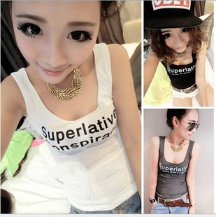 2015夏季 字母印花棉韓版女式打底背心吊帶 廠家直銷批發(fā)女裝 /