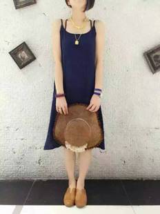 2015夏新款純色長裙寬松森女系棉麻不規(guī)則裙擺連衣裙 /