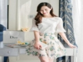 2015新款女裝韓版兩件套印花雪紡連衣裙 半裙加上衣 /