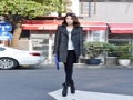 冬季新款女式修身大衣 歐美長款大衣女式 純色翻領(lǐng)長袖大衣女裝 /
