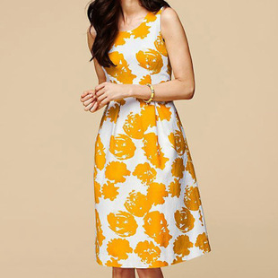 歐美原單 時(shí)尚棉繡花加印花背心裙 修身束腰A字連衣裙 /